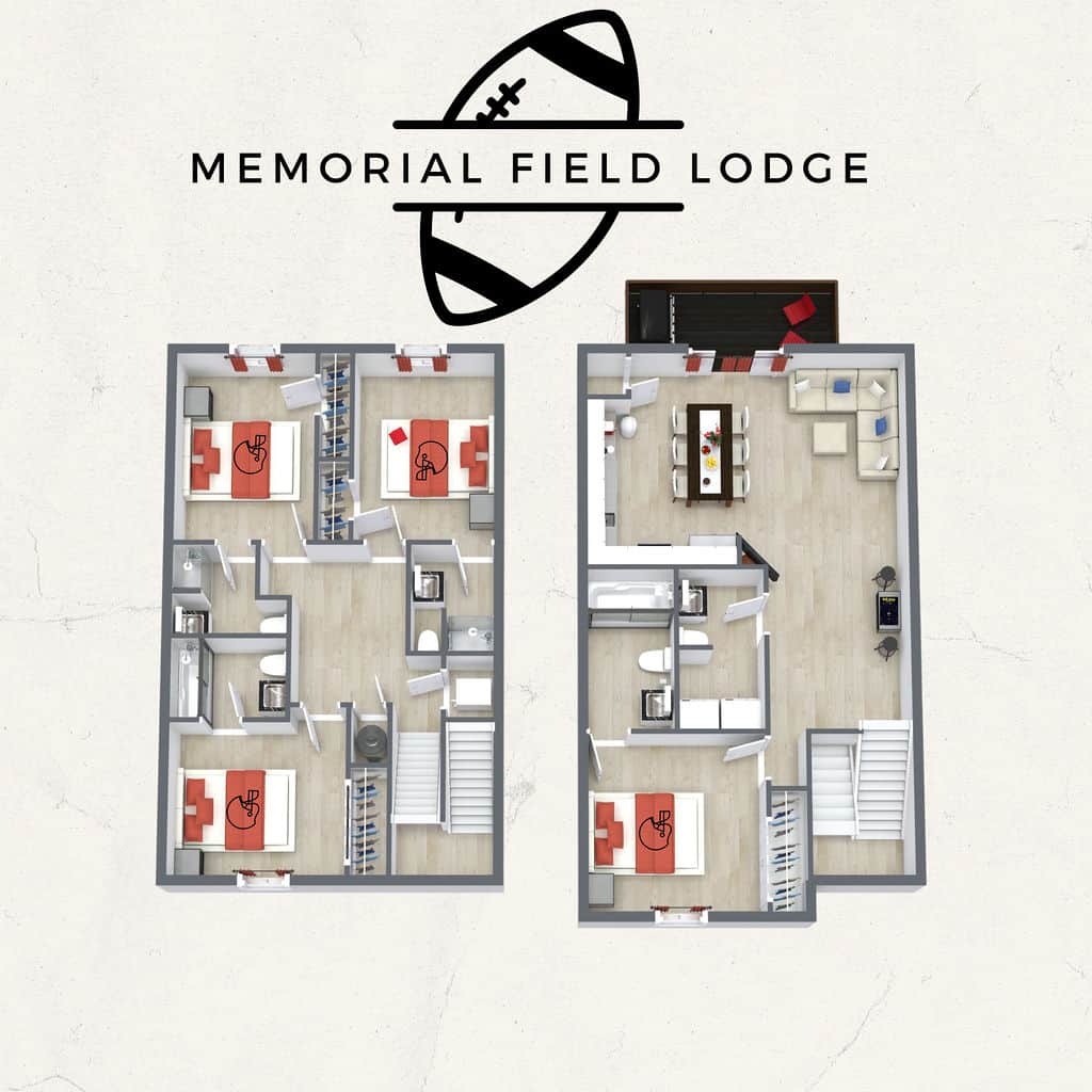 This Indiana Football-themed townhome features 4 Bedrooms and 4.5 Baths! Each bedroom has its very own master bathroom making it perfect for everyone to get ready for the day at the same time!